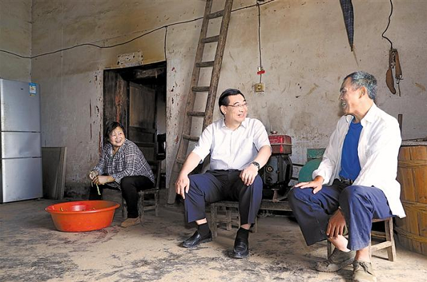 七月八日至十二日,省委書記胡和平深入安康市紫陽縣城關鎮(zhèn)雙坪村駐村蹲點,開展“不忘初心、牢記使命”主題教育專題調研。圖為他在村民朱高海家中詳細了解其生活狀況。記者 宋紅梅攝