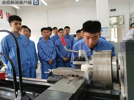 △山丹培黎學(xué)校學(xué)生正在加工皮帶輪。(央視記者關(guān)舟拍攝)
