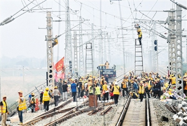 500余名施工人員正在緊張地進行站改作業(yè)(西安報業(yè)全媒體記者 翟小雪 攝)