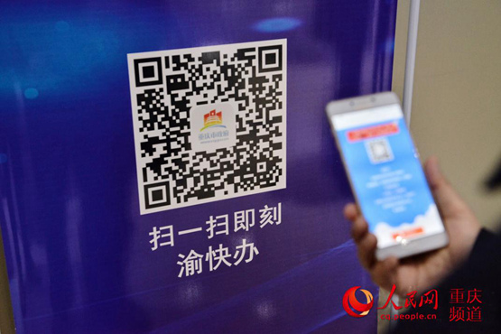 市民手機(jī)掃碼,即刻“渝快辦”。鄒樂攝