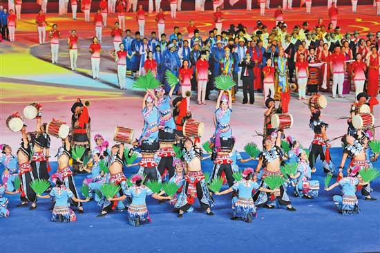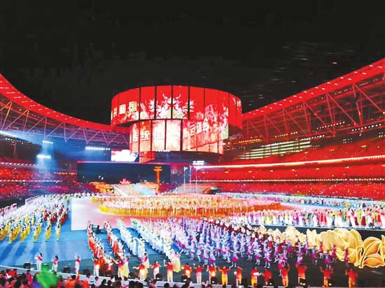 華夏文明的重要發(fā)祥地鄭州彩旗飄揚、人潮涌動,到處一片歡樂的節(jié)日景象。9月8日晚,第十一屆全國少數(shù)民族傳統(tǒng)體育運動會開幕式在鄭州市奧體中心隆重舉行。