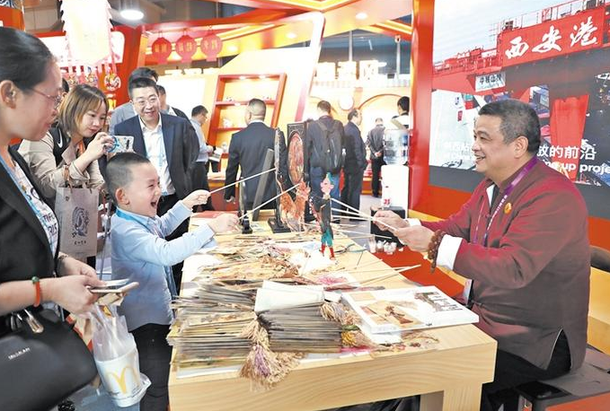 在“非物質(zhì)文化遺產(chǎn)暨中華老字號”展區(qū)內(nèi),以“承漢唐文脈 品三秦遺風”為主題的陜西展區(qū)人氣爆棚,駐足參觀、拍照留念者絡(luò)繹不絕。