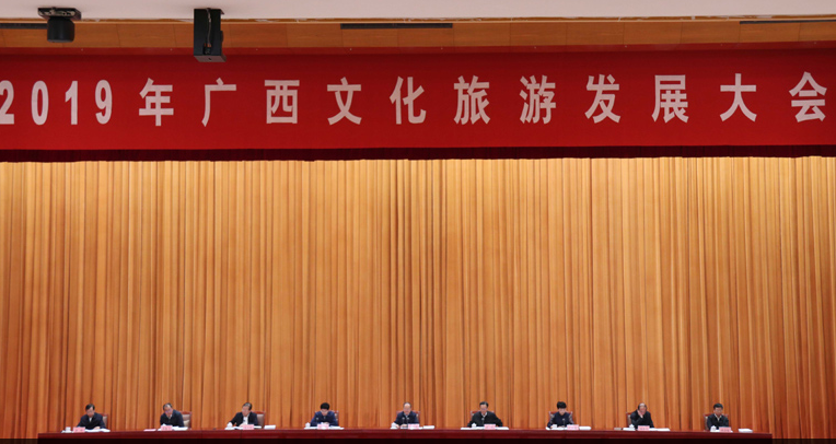 廣西壯族自治區(qū)黨委書記、自治區(qū)人大常委會(huì)主任鹿心社在講話中說,黨的十八大以來(lái),自治區(qū)黨委、政府高度重視文化旅游工作,召開專題會(huì)議、出臺(tái)系列文件,推動(dòng)全區(qū)文化旅游快速發(fā)展。2018年,全區(qū)實(shí)現(xiàn)旅游總消費(fèi)7619.9億元,同比增長(zhǎng)36.6%,產(chǎn)業(yè)綜合增加值占GDP18.3%。他表示,自治區(qū)的目標(biāo)是,到2025年,全區(qū)文化旅游產(chǎn)業(yè)高質(zhì)量發(fā)展體系初步形成,區(qū)域旅游經(jīng)濟(jì)均衡發(fā)展,產(chǎn)業(yè)規(guī)??焖贁U(kuò)大、產(chǎn)業(yè)整體水平顯著提升、產(chǎn)業(yè)核心競(jìng)爭(zhēng)力明顯增強(qiáng),旅游總?cè)舜?、總消費(fèi)實(shí)現(xiàn)翻番,文化旅游經(jīng)濟(jì)主要指標(biāo)邁入全國(guó)第一方陣。