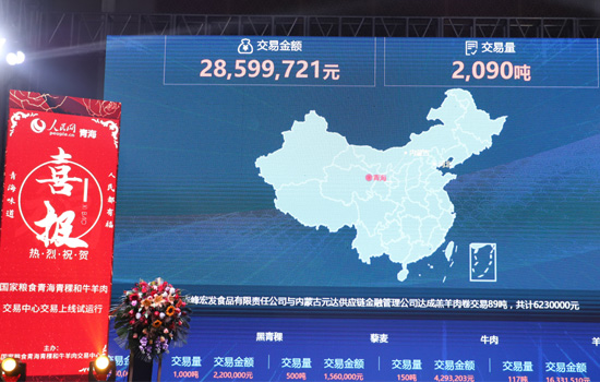 隨著交易中心的正式上線試運行,在全場領(lǐng)導(dǎo)嘉賓和媒體們的共同注目下,青稞、藜麥、牛羊肉的首場線上交易在現(xiàn)場火熱進行。在首場交易中,青稞、藜麥及牛羊肉交易總量突破2090噸,總交易額達2859.9萬元,累累碩果見證著青海青稞和牛羊肉邁出了“買全國、賣全國”的堅實步伐,交易中心將為青海糧食和農(nóng)畜產(chǎn)業(yè)的可持續(xù)發(fā)展注入更加澎湃的新發(fā)展動力。