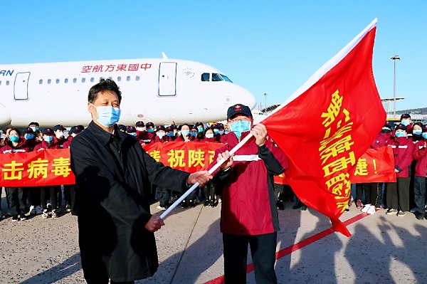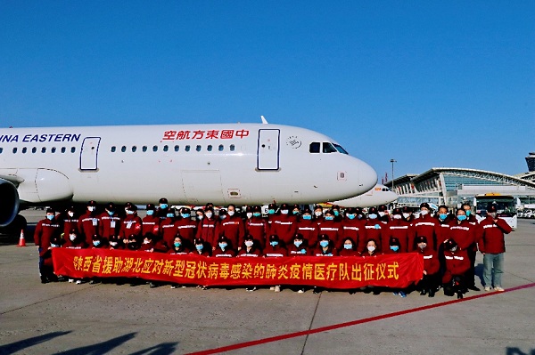 新華網(wǎng)西安2月15日電(藺娟 蔡良良)2月15日17點30分許,陜西省第三批支援湖北醫(yī)療隊103名醫(yī)務(wù)人員乘坐東航MU2000包機啟程,前往湖北援助抗擊新冠肺炎疫情。