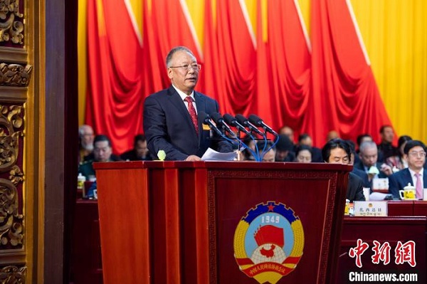 西藏自治區(qū)政協(xié)副主席索朗仁增向大會(huì)作工作報(bào)告。 何蓬磊 攝