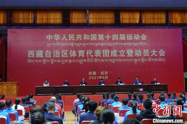 8月24日,中華人民共和國(guó)第十四屆運(yùn)動(dòng)會(huì)西藏自治區(qū)體育代表團(tuán)成立暨動(dòng)員大會(huì)在拉薩召開。 冉文娟 攝