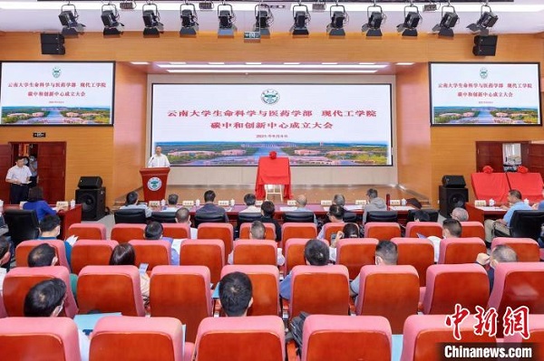 圖為云南大學(xué)生命科學(xué)與醫(yī)藥學(xué)部、現(xiàn)代工學(xué)院、碳中和創(chuàng)新中心成立大會(huì)在云南大學(xué)呈貢校區(qū)舉行。 繆超 攝