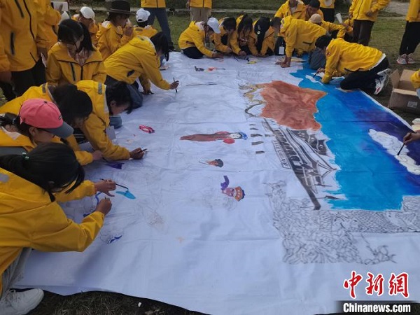 圖為學(xué)生們共繪一幅“中華民族一家親”。 西藏青少年實(shí)踐教育基地供圖