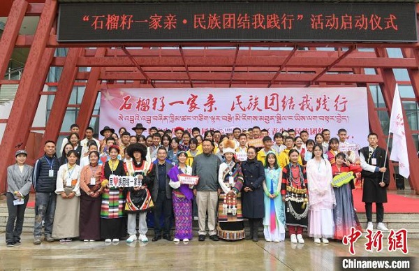 圖為學(xué)生們在第五屆西藏青少年民族團(tuán)結(jié)教育實(shí)踐營活動啟動儀式上合影留念。 貢嘎來松 攝
