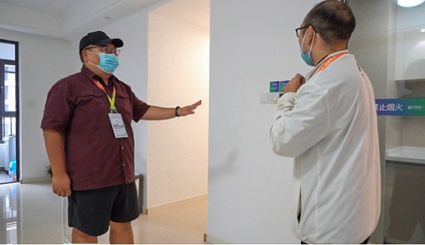 在住地抵離通道,入住人員抵離管理中心工作人員提前等候周海晉的到來。周海晉搭乘的汽車剛一到達,工作人員就熱情上前,幫他完成“全運碼”檢查及各項安檢程序,然后由等候在抵離通道口的電動車將他送至住宿樓宇,再由樓層工作人員接待他順利入住。