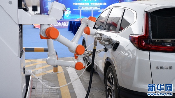 12月29日,加油機(jī)器人為汽車加油。伍世偉 攝(新華網(wǎng) 發(fā))