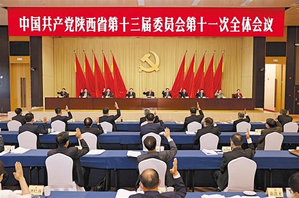 五月二十五日,中國(guó)共產(chǎn)黨陜西省第十三屆委員會(huì)第十一次全體會(huì)議在西安舉行。 記者 張辰攝