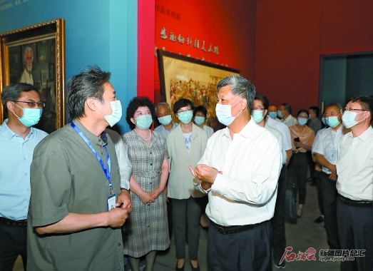 6月20日,新疆維吾爾自治區(qū)黨委書記馬興瑞來到新疆藝術(shù)中心調(diào)研,并主持召開座談會。這是馬興瑞在新疆美術(shù)館了解新疆美術(shù)發(fā)展脈絡(luò)和優(yōu)秀藝術(shù)成果。 □石榴云/新疆日報記者 崔志堅攝
