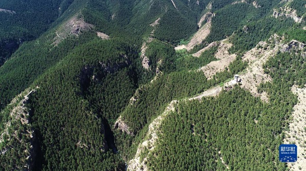 這是綠意盎然的賀蘭山蘇峪口國家森林公園(無人機照片,6月14日攝)。新華社記者王鵬攝