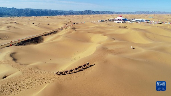 這是在寧夏中衛(wèi)市拍攝的騰格里沙漠(無人機照片,2018年9月7日攝)。新華社記者王鵬攝