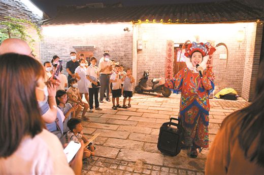 初夏,游客在北海老街觀看戲曲表演。 李君光/攝