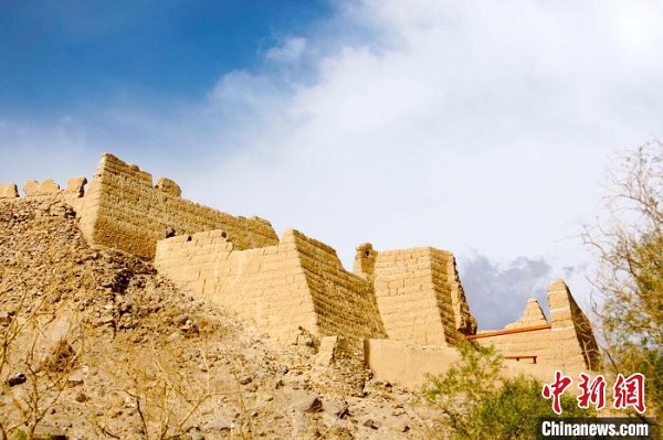 巍峨的雪山下是千年的石頭城遺址,歷盡滄桑,在山丘上仍顯得那么雄壯。(資料圖)王小軍攝