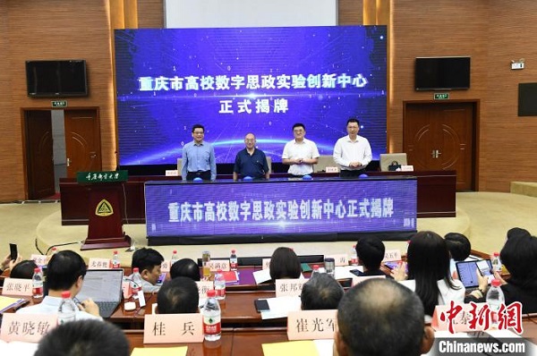 圖為重慶市高校數(shù)字思政實(shí)驗(yàn)創(chuàng)新中心揭牌成立現(xiàn)場(chǎng)。 周毅 攝