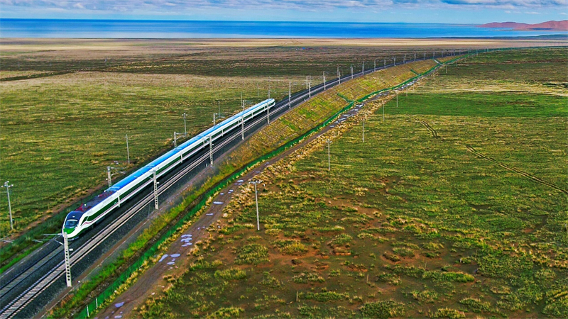 復(fù)興號(hào)路經(jīng)青海湖地區(qū)。青藏集團(tuán)公司供圖