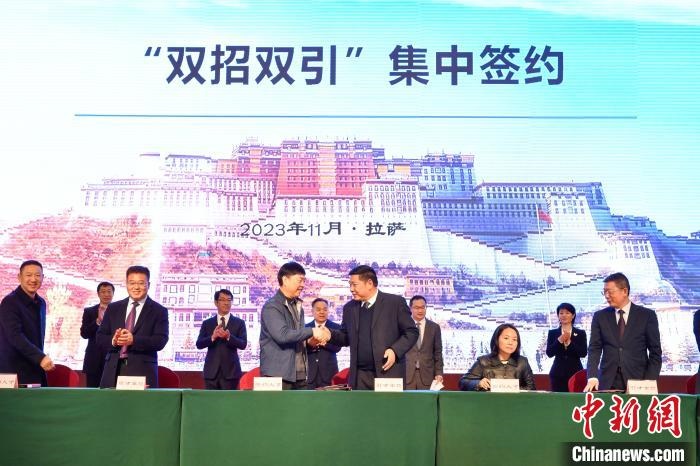 中新網(wǎng)拉薩11月14日電 (貢嘎來松)14日,西藏自治區(qū)在拉薩舉行“雙招雙引”(援藏招商引資、招才引智)集中簽約儀式。簽約儀式上,共簽約援藏招商引資項目20個,協(xié)議資金103.08億元(人民幣,下同),涉及清潔能源、生物科技、特色農(nóng)牧、綠色工業(yè)、現(xiàn)代服務(wù)等領(lǐng)域。21名引進(jìn)專家人才代表參加現(xiàn)場簽約。