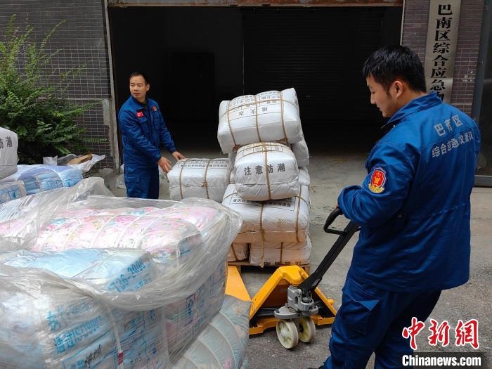 圖為重慶巴南區(qū)應(yīng)急管理局正在將物資倉(cāng)庫(kù)的救災(zāi)棉被、棉衣分發(fā)給轄區(qū)部分受災(zāi)鎮(zhèn)街。重慶市應(yīng)急管理局供圖