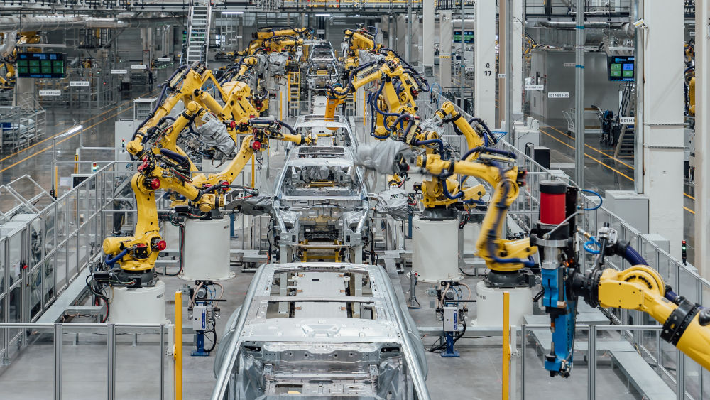 這是在重慶市兩江新區(qū)拍攝的賽力斯汽車超級(jí)工廠焊裝車間生產(chǎn)線(2024年2月26日攝,無人機(jī)照片)。新華社發(fā)(高彰 攝)