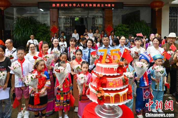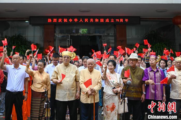中新網(wǎng)西雙版納10月1日電(陳靜)10月1日,“千里邊疆同升國旗同唱國歌”活動在云南省西雙版納州景洪市舉行,慶祝中華人民共和國成立75周年。普洱民族團結誓詞碑盟誓代表以及后代、西雙版納州各民族學會(研究會)代表以及10月1日出生的各界人士齊聚一堂,同升一面旗、同唱一首歌、同過一生日、同抒一份情。