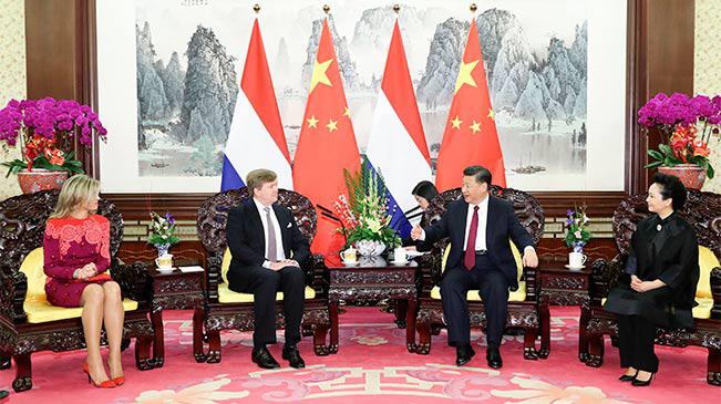 習近平說,威廉-亞歷山大國王和王后在中國傳統(tǒng)新春佳節(jié)到來之際訪華,我們感到格外高興。相信在新的一年里,兩國將通過共建“一帶一路”開展更多的互利合作。