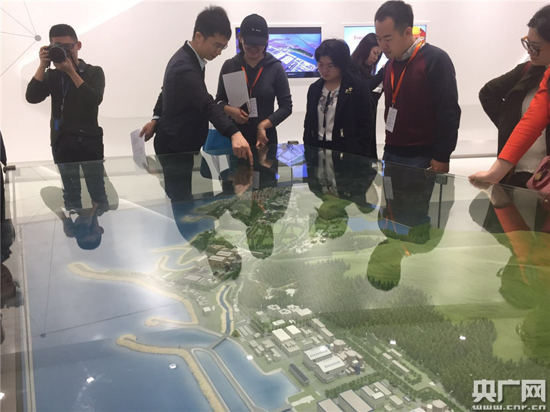 工作人員帶領(lǐng)參觀大亞灣核電基地實(shí)景沙盤(央廣網(wǎng)記者王雨馨攝)