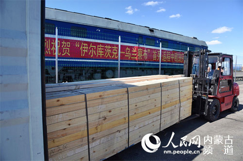 首趟從俄羅斯伊爾庫茨克市至內(nèi)蒙古烏蘭察布市的中歐班列。(張鵬攝)