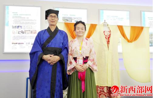 “中國華服媽媽”姜姍秀在絲博會華服非遺展位前現(xiàn)場向西部網(wǎng)記者及廣大網(wǎng)友介紹其華服作品“隋唐對襟沙羅衫”的工藝制作過程,及對華服女紅傳承的人生感悟。