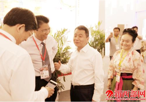 陜西省商務(wù)廳副廳長李升榮在絲博會分會場會見姜姍秀對其華服非遺作品贊嘆不已,并希望姜姍秀華服非遺藝術(shù)館項目能夠作為陜西對外的亮點項目落地絲路產(chǎn)業(yè)園。