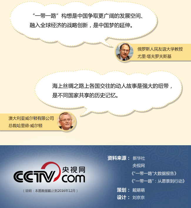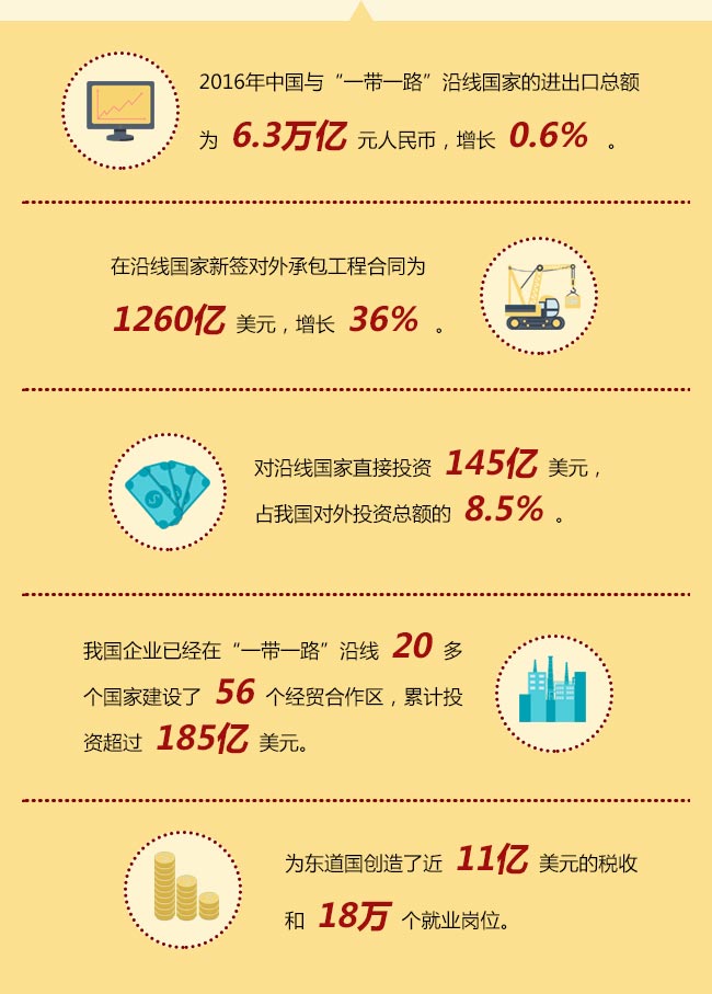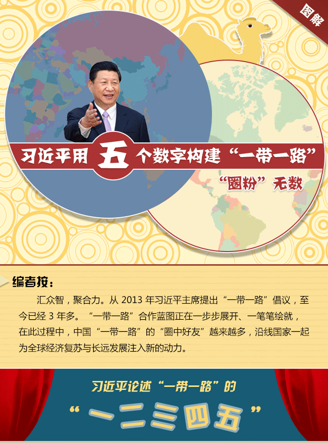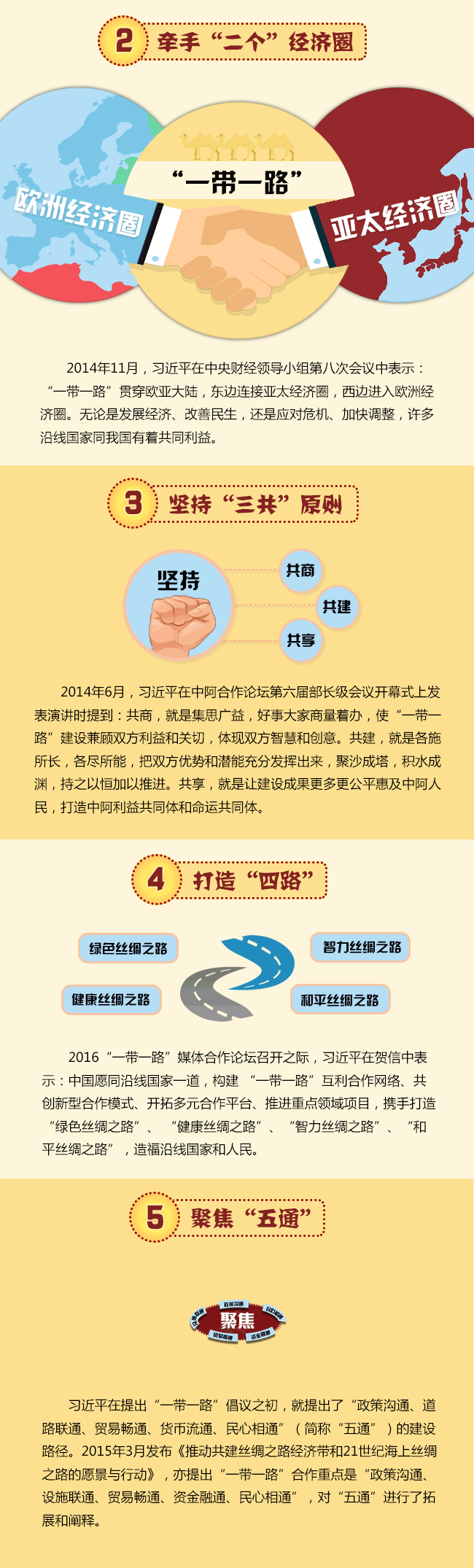 2013年,習(xí)近平主席提出“一帶一路”偉大構(gòu)想,引起世界各國(guó)廣泛共鳴。經(jīng)過(guò)近四年的扎實(shí)推進(jìn),目前,“一帶一路”倡議已落地生根、開(kāi)花結(jié)果,一幅惠及世界的藍(lán)圖正筆筆繪就、徐徐展開(kāi)。在此過(guò)程中,習(xí)近平主席在國(guó)內(nèi)外各種場(chǎng)合多次發(fā)表重要論述,他對(duì)“一帶一路”核心內(nèi)容如何闡述?“一帶一路”為全球經(jīng)濟(jì)發(fā)展注入怎樣的新動(dòng)力?各方又給出了怎樣的評(píng)價(jià)?一張動(dòng)態(tài)圖解告訴你。