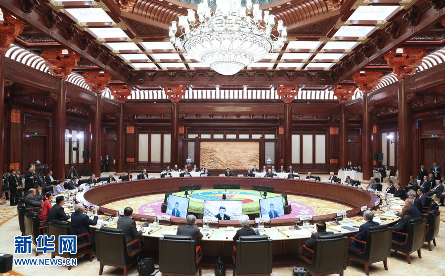 5月15日,“一帶一路”國際合作高峰論壇在北京雁棲湖國際會議中心舉行圓桌峰會,國家主席習(xí)近平主持會議并致辭。 新華社記者 馬占成 攝