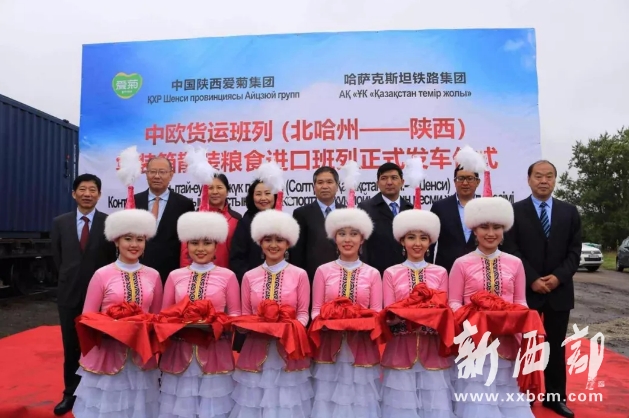 經(jīng)過一年的努力,由哈薩克斯坦至西安國際港務(wù)區(qū)和阿拉山口綜合保稅區(qū)的散裝小麥、菜餅專列,8月19日正式發(fā)運,當(dāng)日在北哈州愛菊集團農(nóng)產(chǎn)品物流加工基地舉行了發(fā)車儀式!