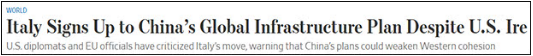 “不顧美國憤怒,意大利簽署了中國的全球基礎(chǔ)設(shè)施建設(shè)計(jì)劃” 《華爾街日?qǐng)?bào)》報(bào)道截圖