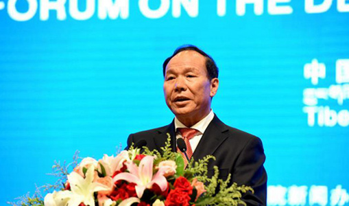 西藏自治區(qū)主席齊扎拉在“2019·中國西藏發(fā)展論壇”上發(fā)表主旨演講。(旦增 攝)