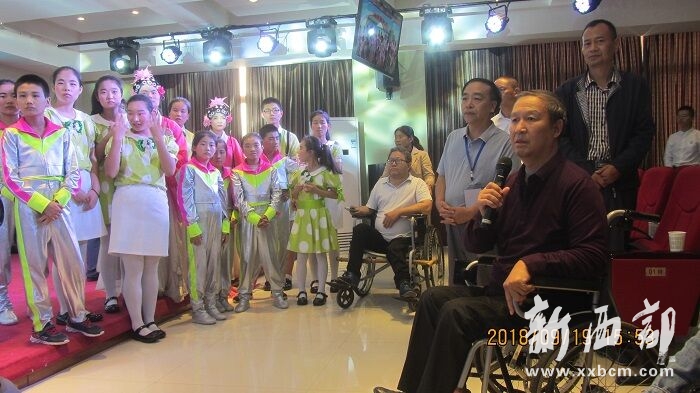 在寶雞市特殊教育學校,賀緒林動情贊美孩子們表演的節(jié)目。 (新西部網(wǎng) 王順利攝)
