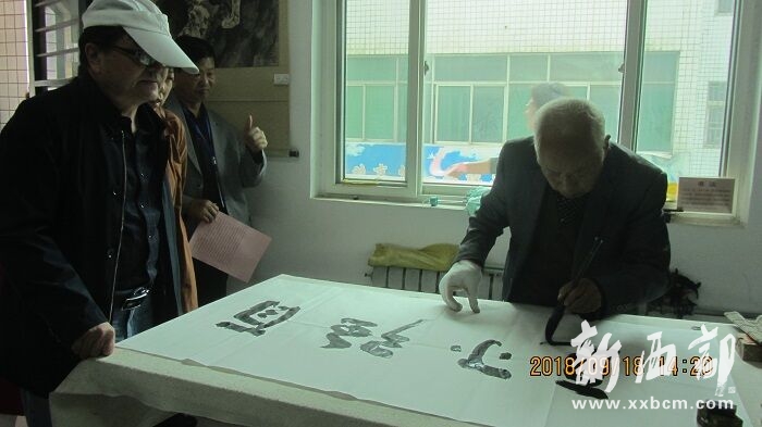 左手書法家武安成 (新西部網(wǎng) 王順利攝)