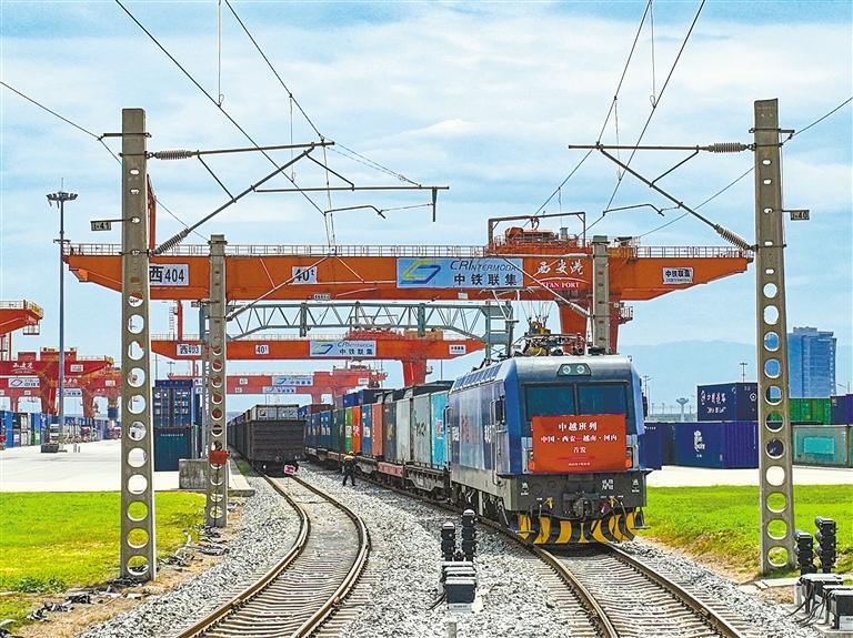 8月23日,長安號中越國際貨運班列(西安—河內(nèi))駛出西安國際港站。 本報記者 劉印攝