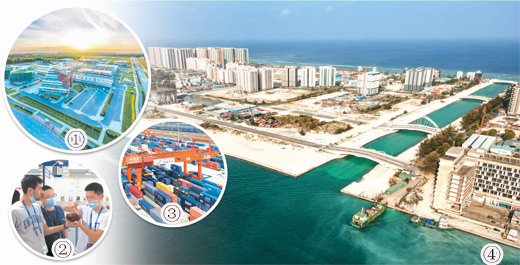 圖④:中企在馬爾代夫胡魯馬累島承建的五橋項(xiàng)目被當(dāng)?shù)孛襟w形容為“開啟了這個城市的新篇章”。圖為2022年3月24日在胡魯馬累島拍攝的五橋項(xiàng)目中的四座橋(無人機(jī)照片)。