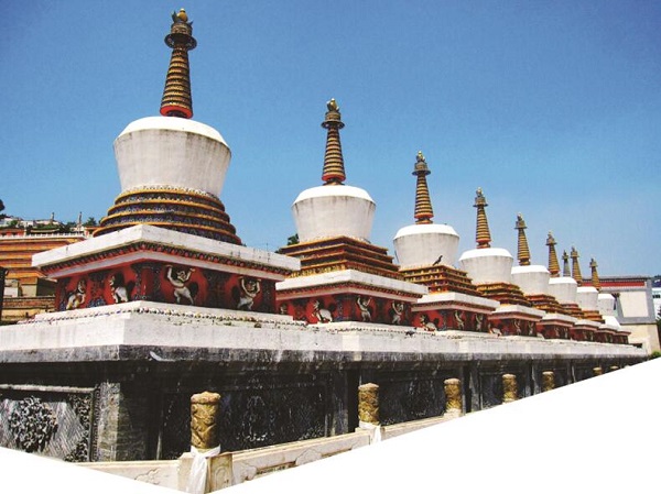 塔爾寺,因塔而成寺。這座寺院已有400多年的歷史,是藏傳佛教格魯派創(chuàng)始人宗喀巴大師的誕生地。據(jù)說,宗喀巴16歲赴藏,一去不返。年邁的母親日夜思念,寫了一封信并剪下一束白發(fā)夾在信中,托人帶到拉薩。母親的信和白發(fā)并沒有觸動兒子的鄉(xiāng)情和孝心,他只寫了一封回信,附上一張用自己的鼻血畫的自畫像和一尊獅子吼佛像。信中寫道:“如果想念我,可在我出生之地建成一座塔,里面裝上10萬尊獅子吼佛像,見塔如同見我。”年邁的母親思子心切,依靠當?shù)匦磐降馁Y助,用石片建起一座蓮聚塔。后經(jīng)不斷擴建,400多年后的今天,全寺占地600多畝,有幾十座殿宇,數(shù)以千計的僧舍宅院,氣勢磅礴。如今,塔爾寺是藏傳佛教格魯派六大寺院之一,也是藏傳佛教的最高學(xué)府之一。