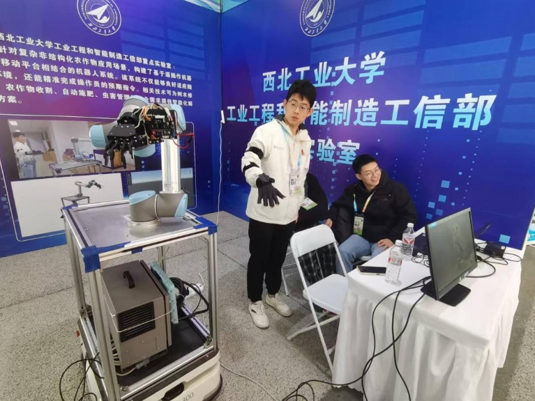 西北工業(yè)大學工業(yè)工程和智能制造工信部重點實驗室?guī)淼摹盎谶b控操作的農(nóng)業(yè)機器人智能設(shè)計”首次亮相農(nóng)高會。這是針對復雜非結(jié)構(gòu)化農(nóng)作物應用場景,構(gòu)建了基于遙操作機器人和移動平臺相結(jié)合的機器人系統(tǒng)。