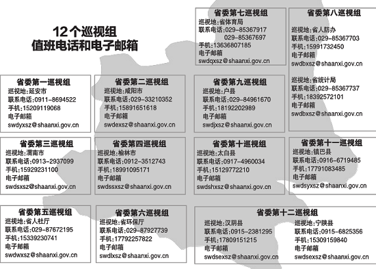 按照省委的統(tǒng)一安排,2015年省委第三輪巡視工作已全面啟動(dòng),8月18日至21日,12個(gè)巡視組分別進(jìn)駐延安市、咸陽市、渭南市、榆林市、省人社廳、省環(huán)保廳、省體育局、省統(tǒng)計(jì)局、省人防辦、戶縣、太白縣、鎮(zhèn)巴縣、漢陰縣、寧陜縣。