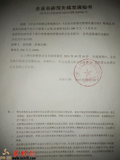 8月17日,記者來到了扶風縣,見到了舉報人曹林生。他告訴記者:“2006年10月27日,寶雞市工業(yè)交通辦公室(現(xiàn)寶雞市商務局)制訂了《2011---2010年寶雞市加油(氣)站行業(yè)發(fā)展規(guī)劃修訂方案》,209省道扶風縣新城區(qū)段規(guī)劃新增一座加油站。碰上這一機遇,我申請成為新城加油站項目投資人,并制作了《抽檢扶風縣新城加油站可行性分析報告》。2007年4月25日,我在扶風縣工商局做了“扶風縣新城加油站”企業(yè)名稱預先核準,《企業(yè)名稱預先核準通知書》載明保留至2014年9月3日。2007年5月15日,我向扶風縣工業(yè)商務信息化局(原扶風縣經貿局)提交了項目申請。同日,工業(yè)商務信息化局向寶雞市商務局(原寶雞市工業(yè)交通辦公室)提交了報告。2011年9月3日,為保險起見,我又在扶風縣工商局做了“扶風縣新城區(qū)加油站”企業(yè)名稱預先核準,《企業(yè)名稱預先核準通知書》載明保留至2014年9月10日。由于我一直未能爭取到土地手續(xù),寶雞市成品零售體系“十二五”規(guī)劃時,我申請保留了“扶風縣新城加油站”。按照國家《成品油市場管理相關規(guī)定》,申報建加油站需要發(fā)改、工商、土地、城建、商務局等部門逐步取得相關手續(xù)方可。2013年1月6日,我再次向扶風縣工業(yè)商務和信息化局提交了申辦“扶風縣新城加油站”申請,得到了相關部門的許可,辦事人員交代我繼續(xù)完善土地手續(xù)。2013年11月29日,我與合伙人蘇國慶終于拿到了“新城加油站”的扶風縣加油站土地使用證。從土地規(guī)劃、收儲、掛牌出讓等一路跟蹤,歷時兩年半耗資兩百余萬,我感覺有幾分欣慰,自己多年的努力終于看到了希望。”
