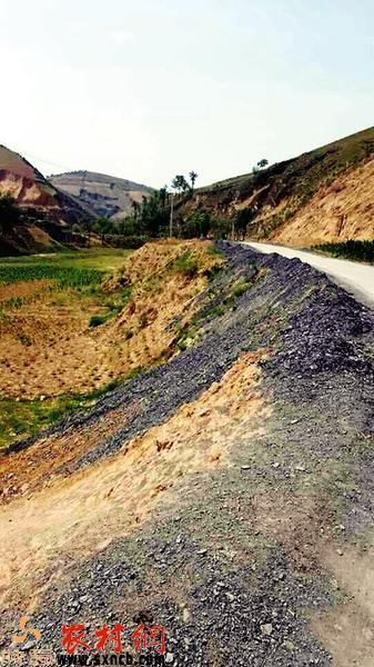 水泥路兩側(cè)倒?jié)M了煤渣和煤矸石