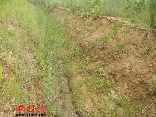 采訪中記者看到,項(xiàng)目建設(shè)的引水渠沒有襯砌,渠中荒草叢生,渠壁被渠水不同程度沖刷破壞?!俺嗽诖遄迂i場附近,襯砌了2百米左右長的引水渠外,其余的田間引水渠都沒有襯砌。剛建成的渠口寬2米左右,現(xiàn)在水渠被渠水沖得有些地方區(qū)口都4、5米寬了?!贝迕裾f,田間生產(chǎn)道路也未硬化,施工時(shí)只是用推土機(jī)在原來路面的基礎(chǔ)上拓寬了一點(diǎn),雨天生產(chǎn)路根本就沒法走。