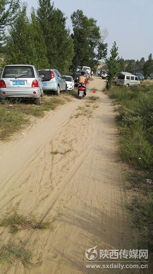 6月27日中午,記者來到尤家峁水庫,首先映入眼簾的是熙熙攘攘的人群和車流,水庫周邊有三個停車地點,橫七豎八地停放著各型私家車,記者細(xì)數(shù)了一下,包括四輛摩托車在內(nèi)共有57輛停放車輛,隨后陸續(xù)開來的車輛令人目不暇接。