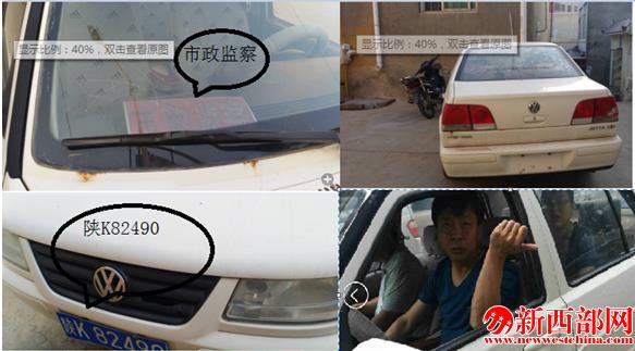我們來(lái)到橫山縣政府大門(mén)口,一輛標(biāo)識(shí)“創(chuàng)建稽查”的車(chē)輛進(jìn)入我們的視線,只見(jiàn)該車(chē)車(chē)頂安裝警燈,車(chē)身模糊的可以看到噴有“創(chuàng)建省級(jí)園林城市”字樣,該車(chē)車(chē)牌號(hào)為“陜K13719”,群眾怎會(huì)想到執(zhí)法車(chē)竟是套牌車(chē)。通過(guò)查詢,此號(hào)牌原所有人系“橫山縣橫山鎮(zhèn)小河灘胡某”,該車(chē)從2010年11月26日至2015年4月23日共有5條違章。